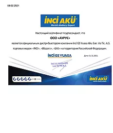 Торговые марки Inci GS YuasaAkuSanayiveTicaret A.S – мы представляем на эксклюзивных условиях на территории Российской Федерации